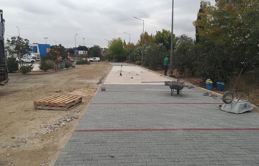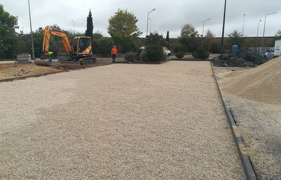 Renovação do estacionamento da loja Decathlon de Santarém, que incluiu a aplicação de novo pavimento betuminoso nos acessos e de blocos de pavimentação nos lugares de estacionamento.